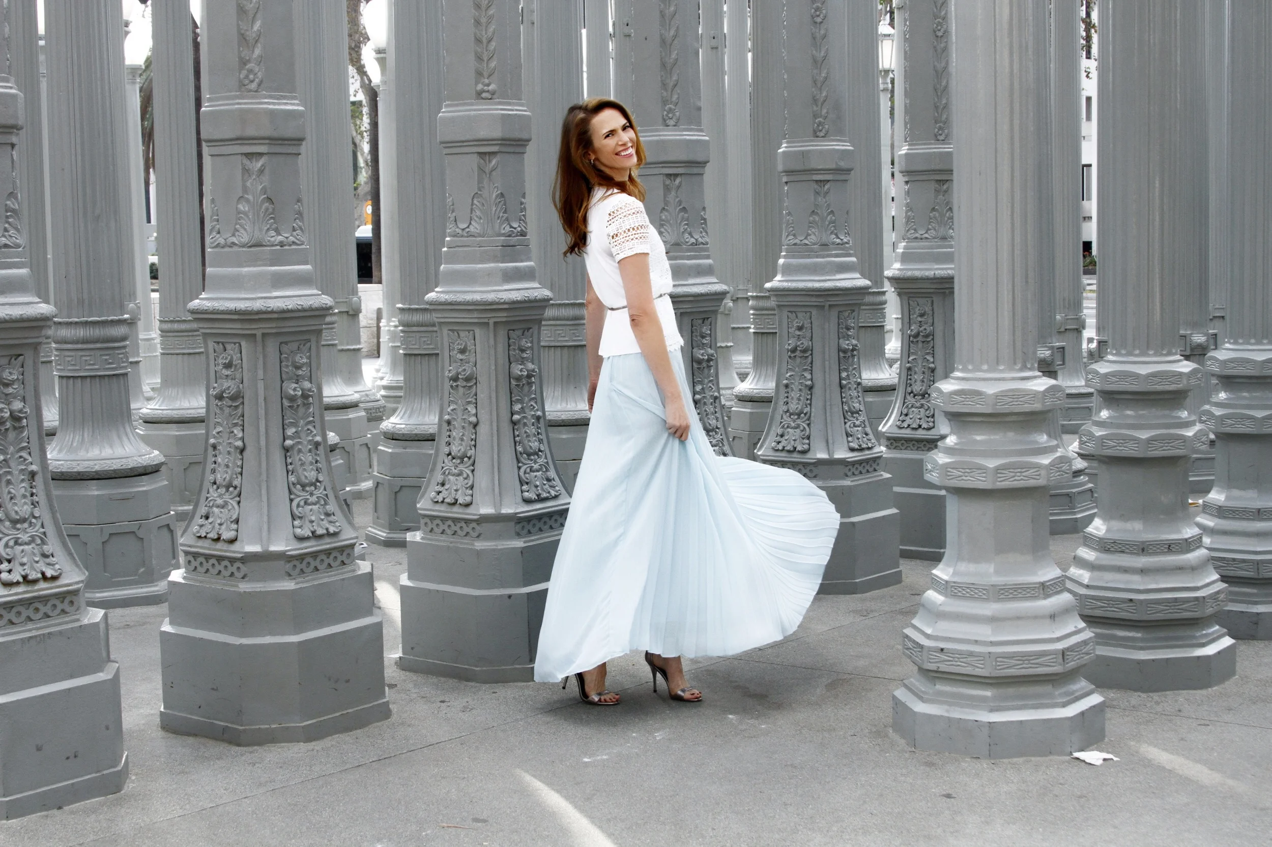 And on a fashion-related note: I'm so loving this skirt! It's from a local Los Angeles boutique, but available on their website. It is long enough (on me that's a real accomplishment!) and flowy (and lined, which is good) and I can't help but feel pretty and feminine in it. Basically like a princess. :) And while baby blue isn't typically thought of as a holiday color, paired with white lace and silver accessories I feel like I stepped out of Frozen or The Chronicles of Narnia, LOL. (The skirt comes in white and black too if you'd rather, and it's on sale!!)