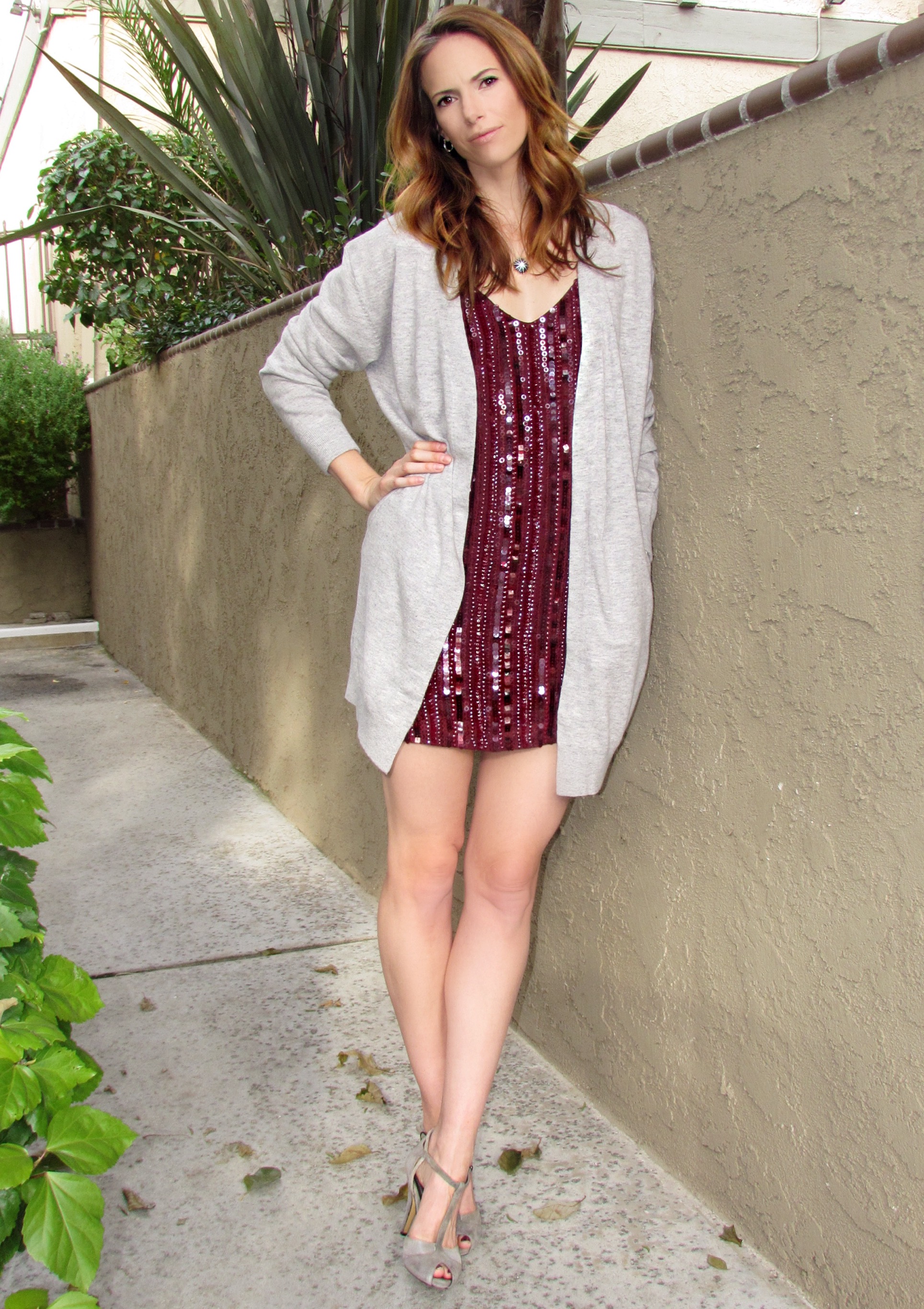 /[Sequin dress - holiday style - gray sweater]