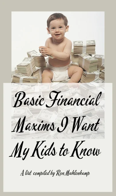 I'm not quite as precise these days, ironically since I have so much more expenses and cash flow, but I am an above average manager of my personal finances (if I do say so myself). Money management is really not something we learn in primary education, and its one of the foundations we need to be responsible, functioning adults. Years ago my dad gave me a sheet with the following list of money 'maxims', which I have saved pinned to my bulletin board. They are important lessons to teach our kids, and important reminders for us adults (or lessons for adults as well). Some of them may seem abstract upon first read, but think about the concept for a minute and you will see the point (bold is added by me for emphasis):